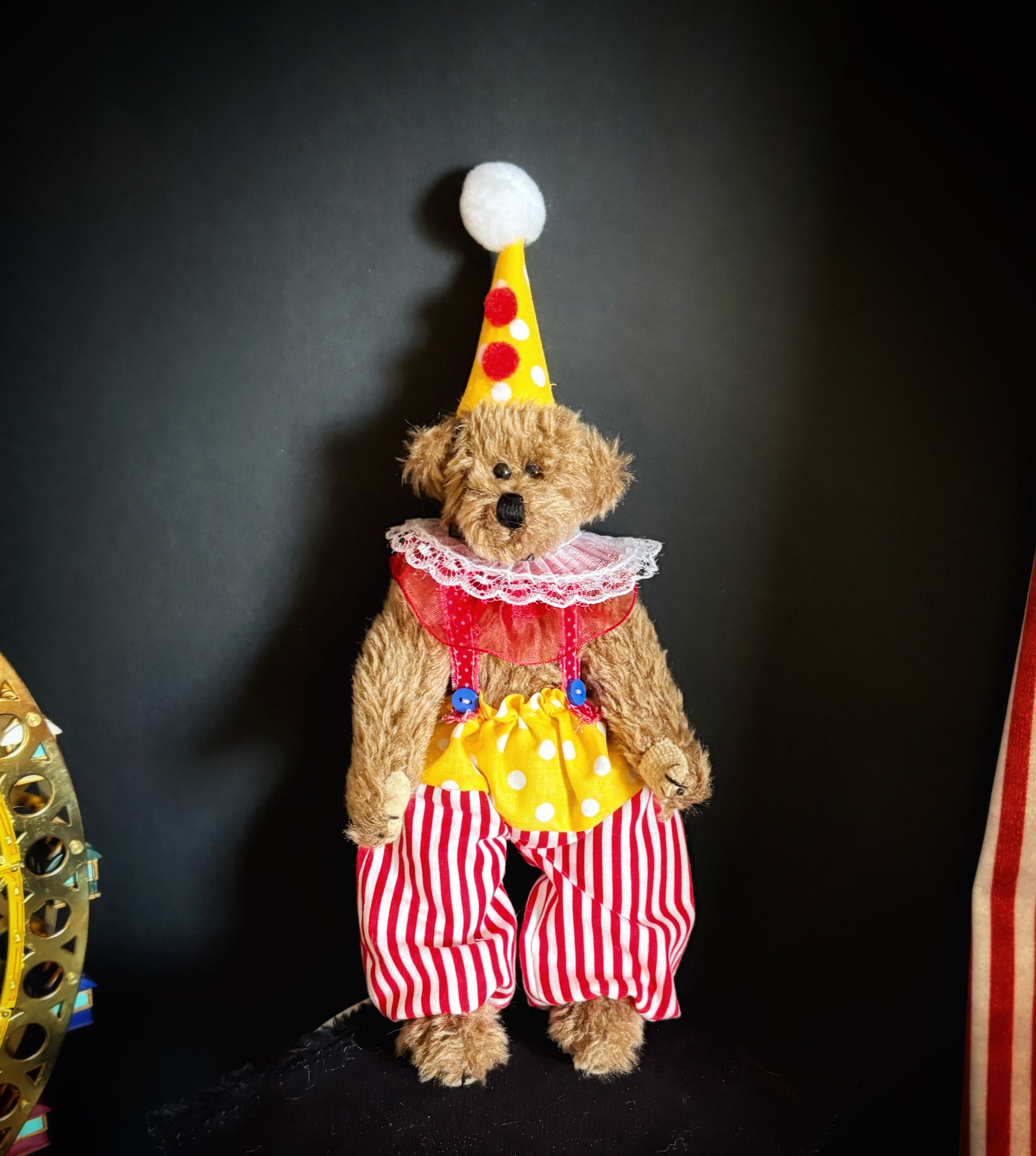 Buttons’ Band of Misfit Bears are secondhand bears lovingly restored by Tilly, dressed in carnival charm with hand-sewn outfits, and welcomed into the circus under Buttons’ gentle guidance.