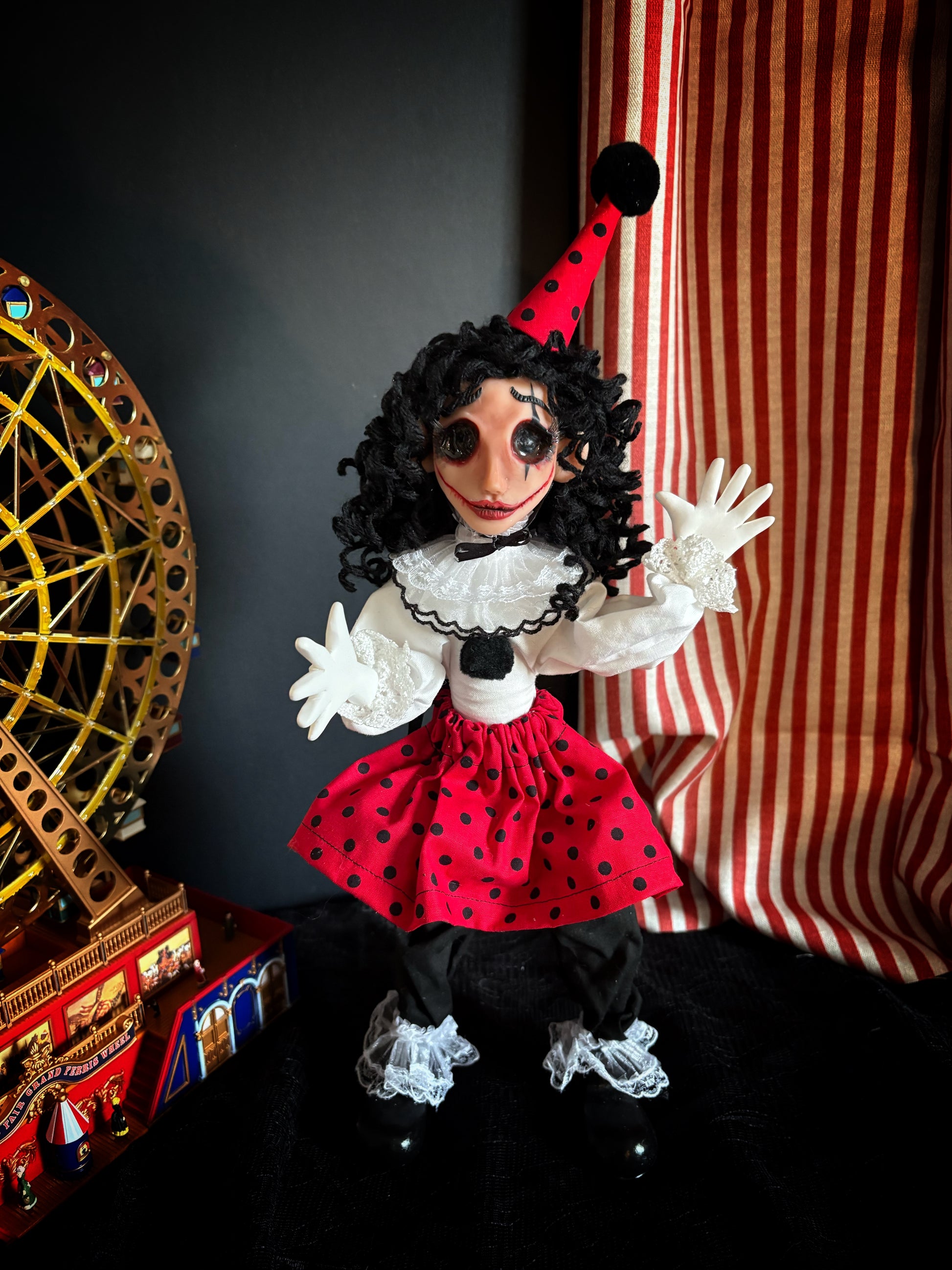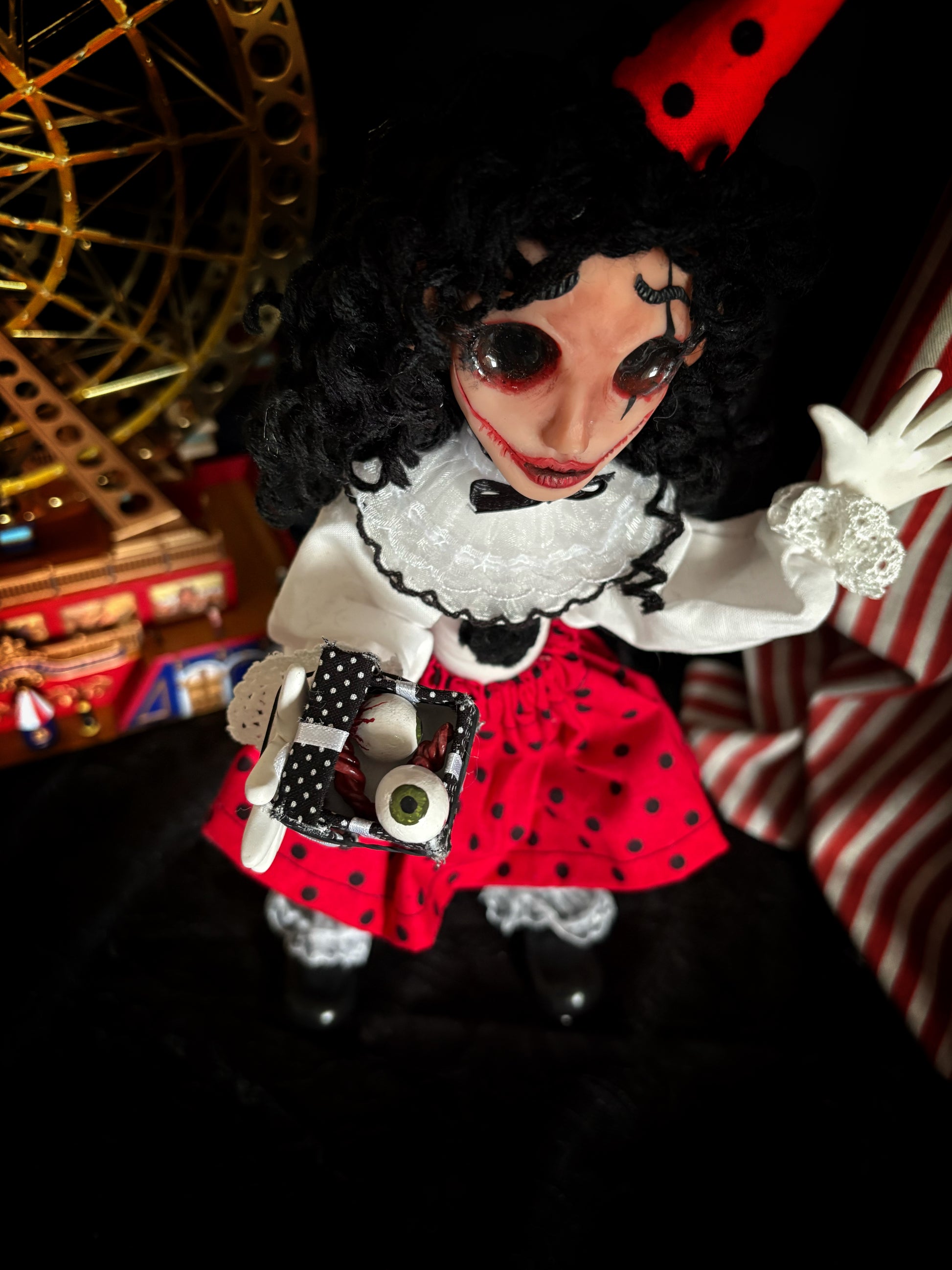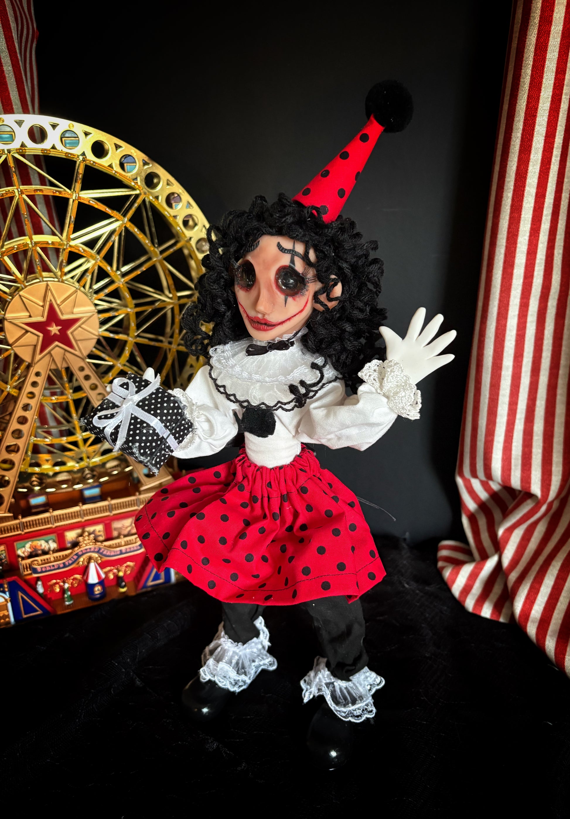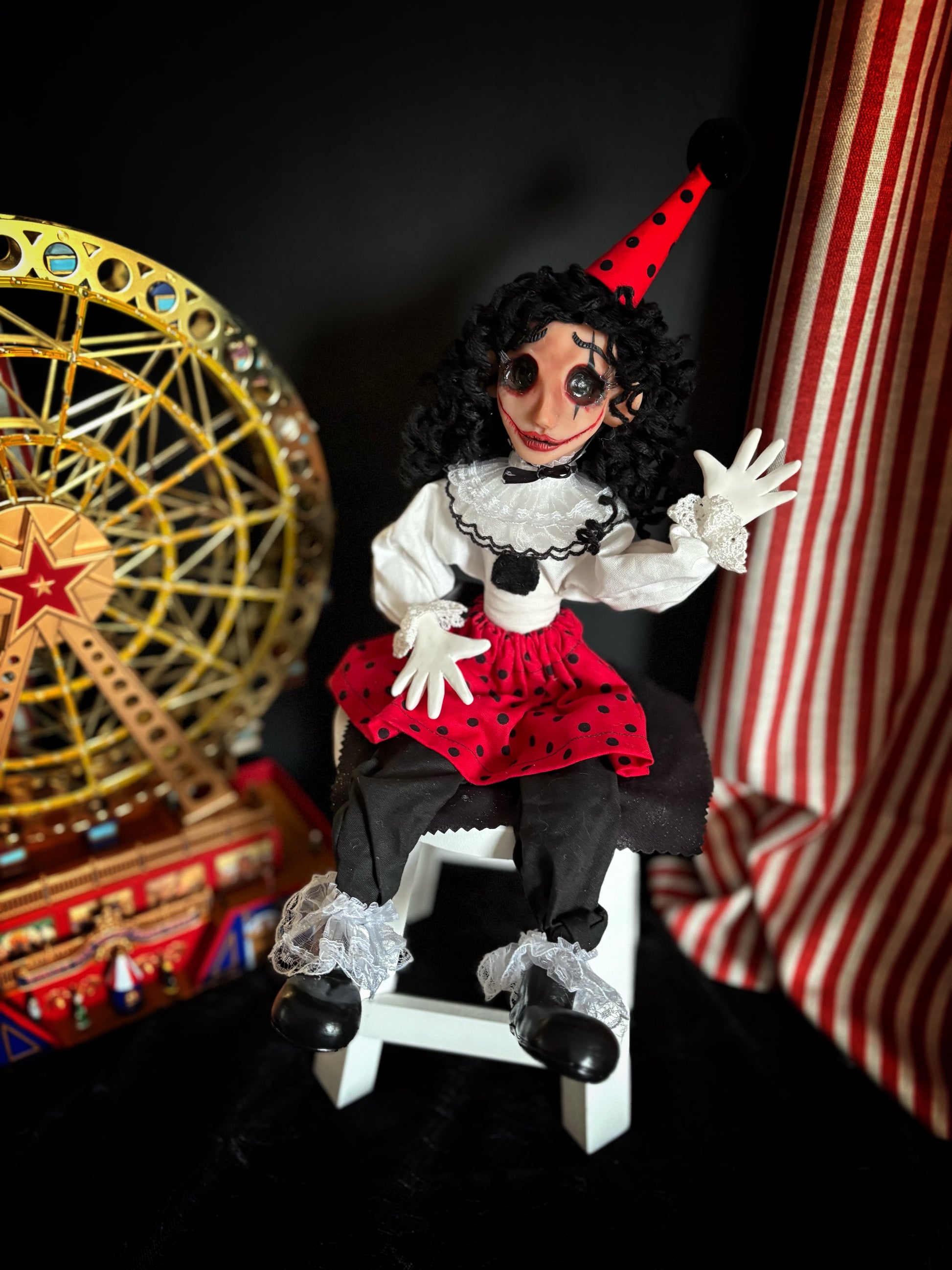 My handmade, posable dolls are crafted with hand-sculpted faces and eerie little details that make each one uniquely haunting. Perfect for fans of spooky art and circus-inspired oddities!